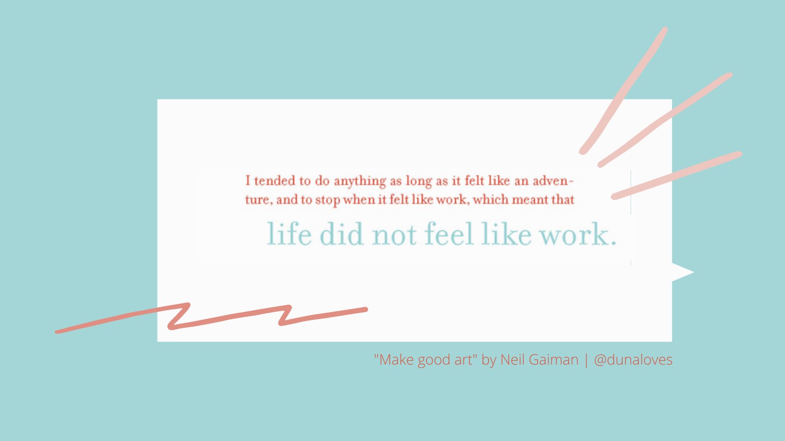 Este librito de Neil Gaiman contiene sus pequeños consejos sobre el mundo del arte, porque no son solo aplicables a la escritura, sino a la vida creativa en general. Es breve, sus ideas son interesantes y la maquetación es muy chula porque juega con los colores, la tipografía, tamaños y orden del texto, etc.