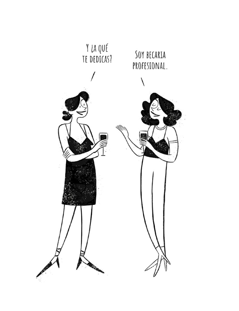Filipa Beleza me ha tocado el corazoncito con esta novela gráfica en la que aborda con humor, ironía y agudeza la cruda realidad de hacerse mayor para unas generaciones a las que se nos prometieron muchas cosas y ahora nos vemos acercándonos a los 40 y en peor situación que nuestros padres. El eterno papel de becaria, los dilemas de compartir piso, cuándo construir una familia, si te llega o no la llamada de la maternidad, o si resulta que eres la única soltera del grupo y la aventura que supone ahora encontrar pareja... Es un retrato genial y sus viñetas son sencillas pero muy potentes.